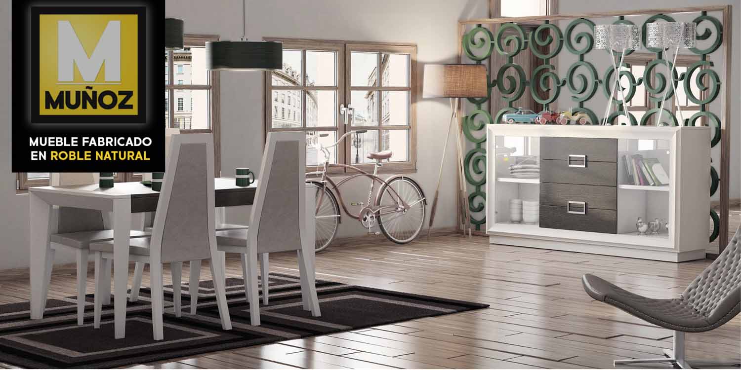 Espectaculares conjuntos de mesas de comedor y sillas de diversas medidas y siempre extensibles.